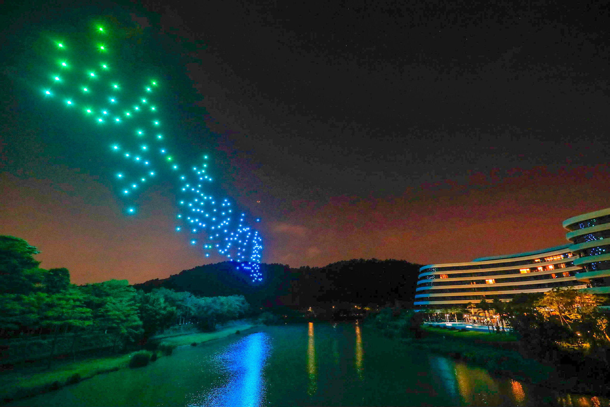 儀式現場,央媒以及省市媒體、自媒體作為首批體驗官乘坐“億航216”載人級自動駕駛飛行器體驗了智慧空中觀光,并同與會嘉賓一起觀看了億航智能帶來的編隊燈光秀表演。