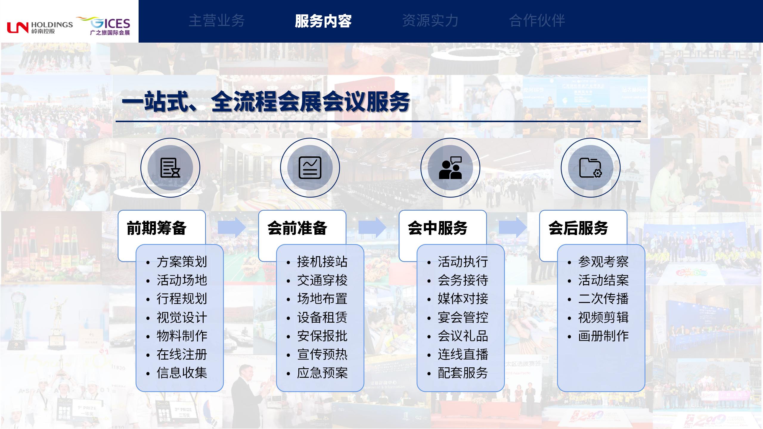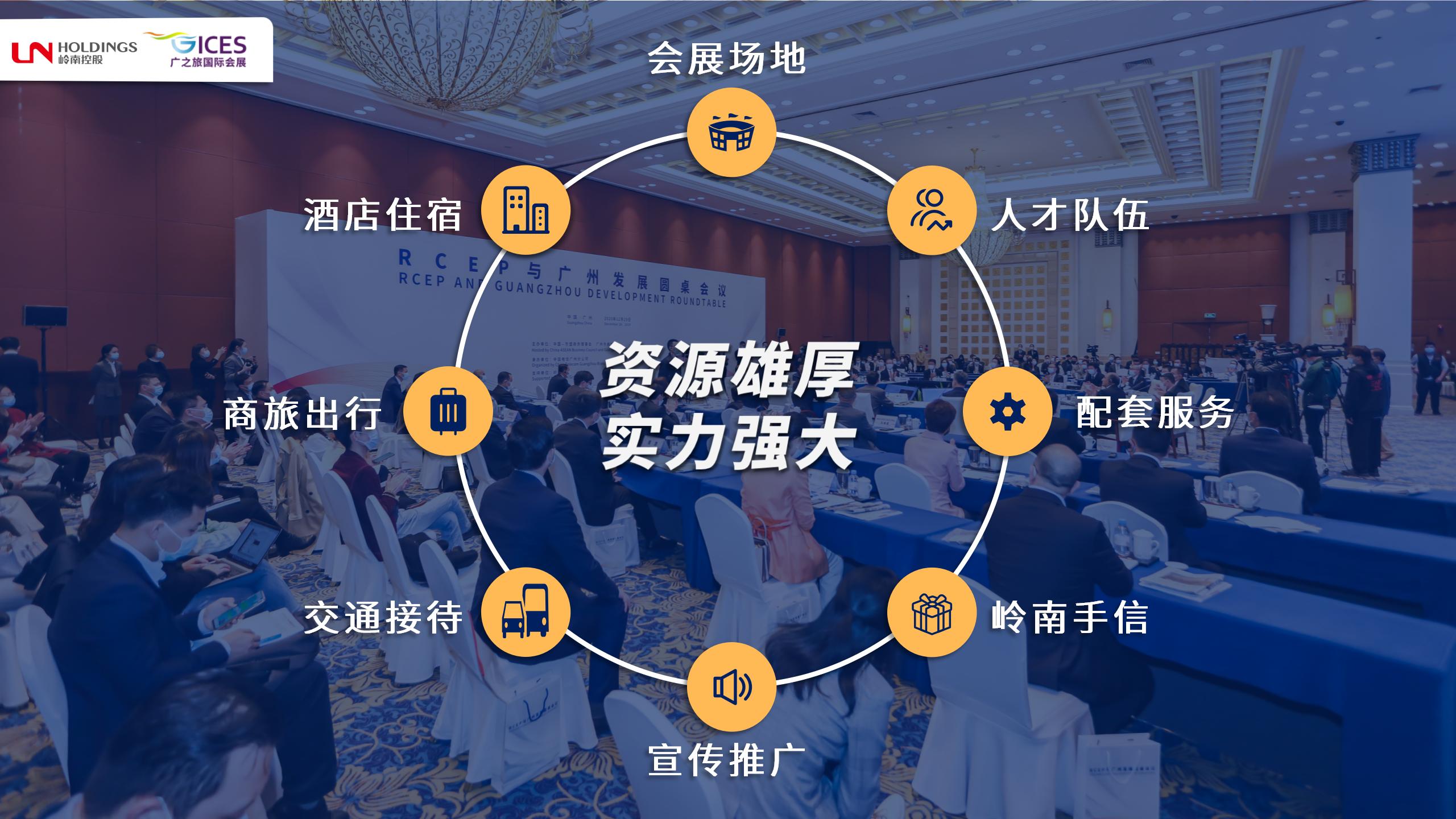 依托嶺南商旅集團吃住行游購娛“一體化”產業鏈優勢,具備優質的會展場館、酒店、商務考察、交通出行、宴會餐飲服務資源。